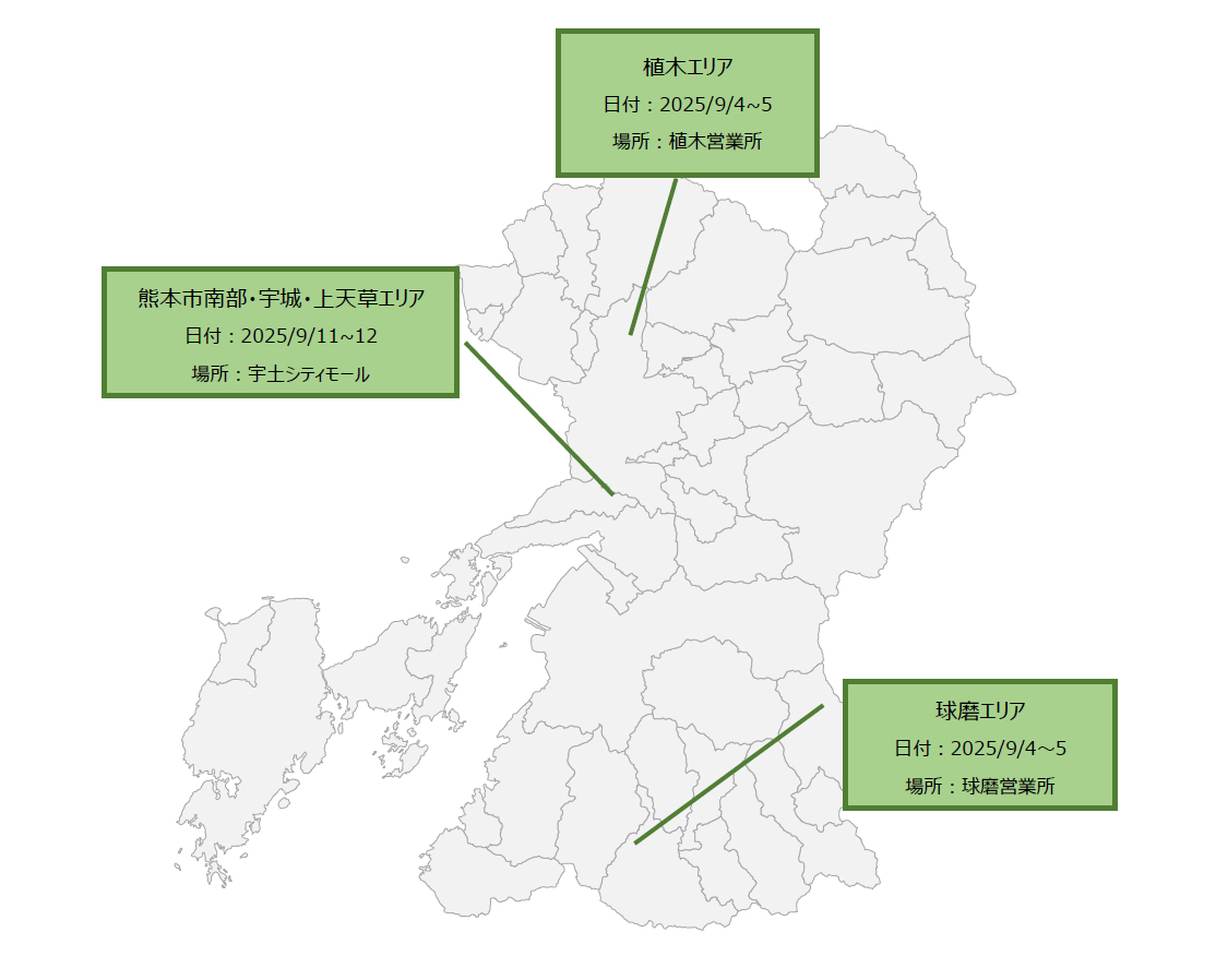 11日(木)~12日(金) | 宇土シティモール | 熊本南営業所、松橋営業所、小川営業所、上天草営業所 |